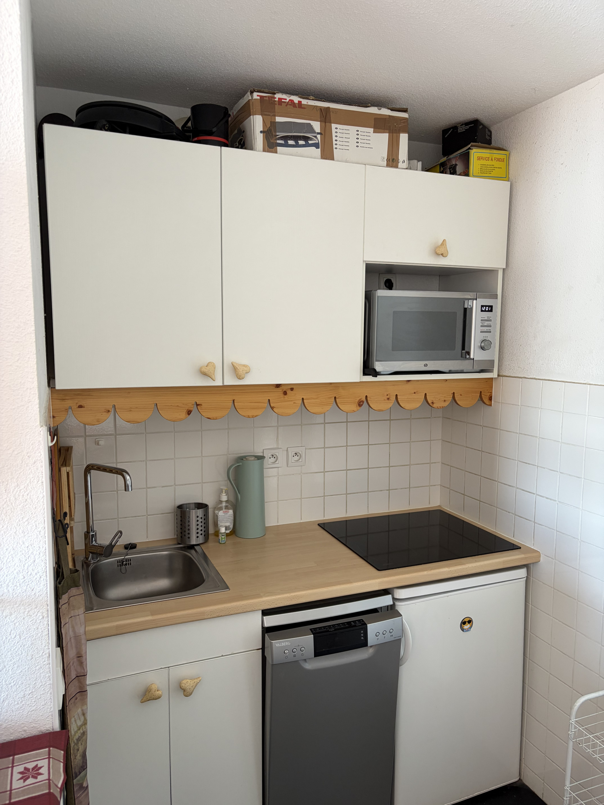 In the induction independent kitchen, refrigerator, dishes/cutlery, kitchen utensils, coffee machine, toaster and kettle are provided.