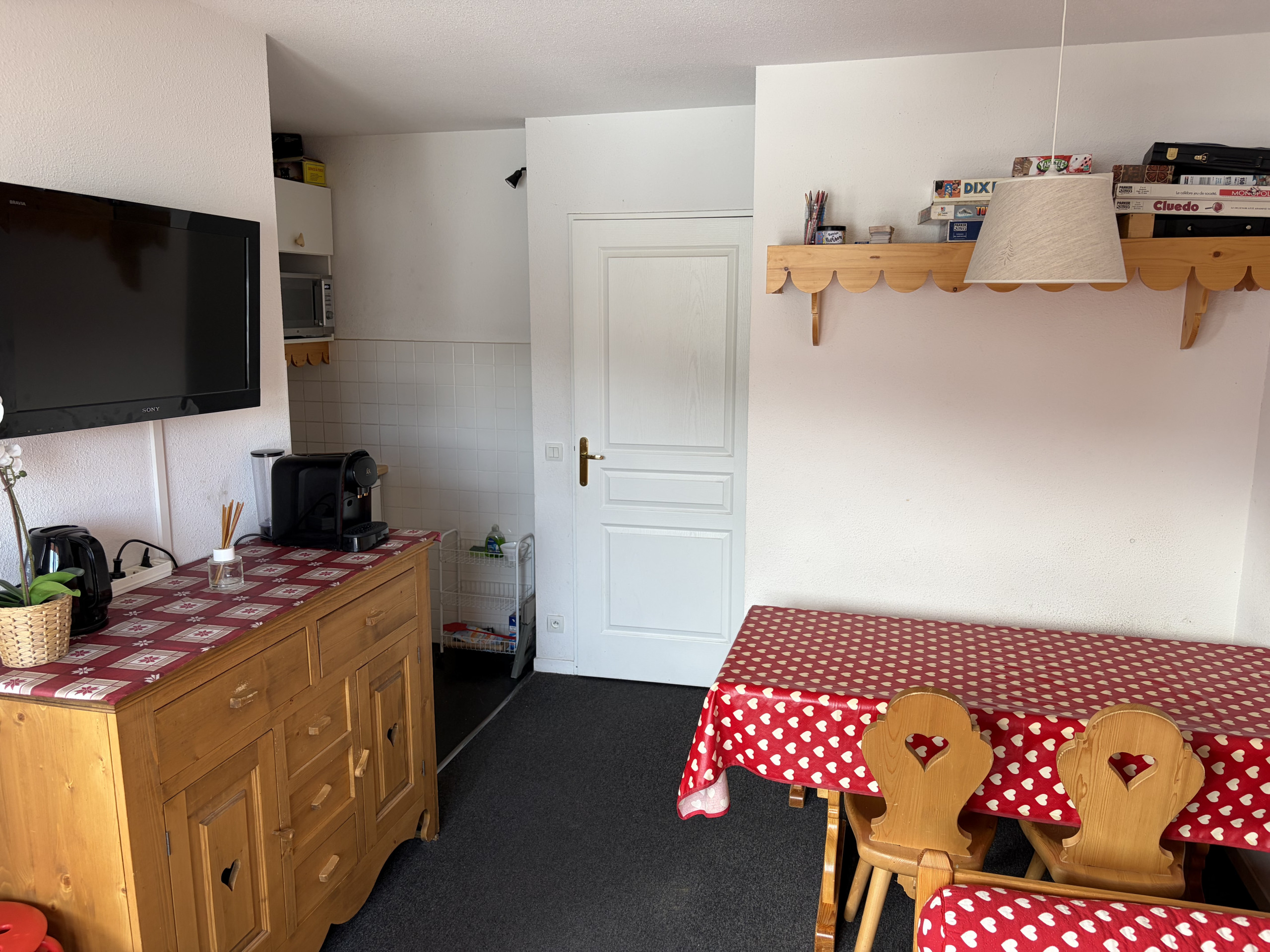 The apartment is 30 m². The property is located at the foot of the ski slope. It has views of the mountain and the slopes.
