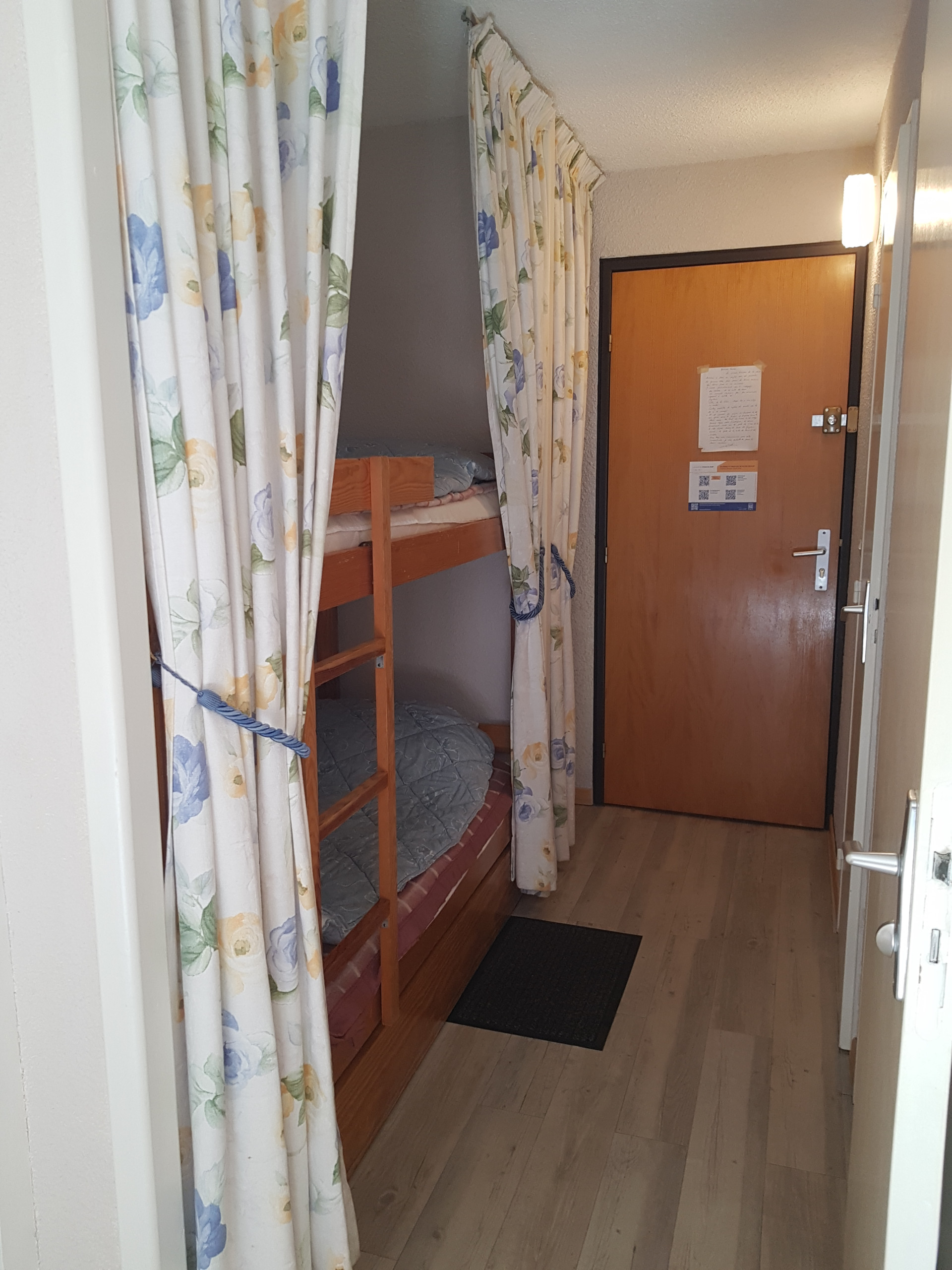 Entrance on sleeping area equipped with a set of 2 bunk beds