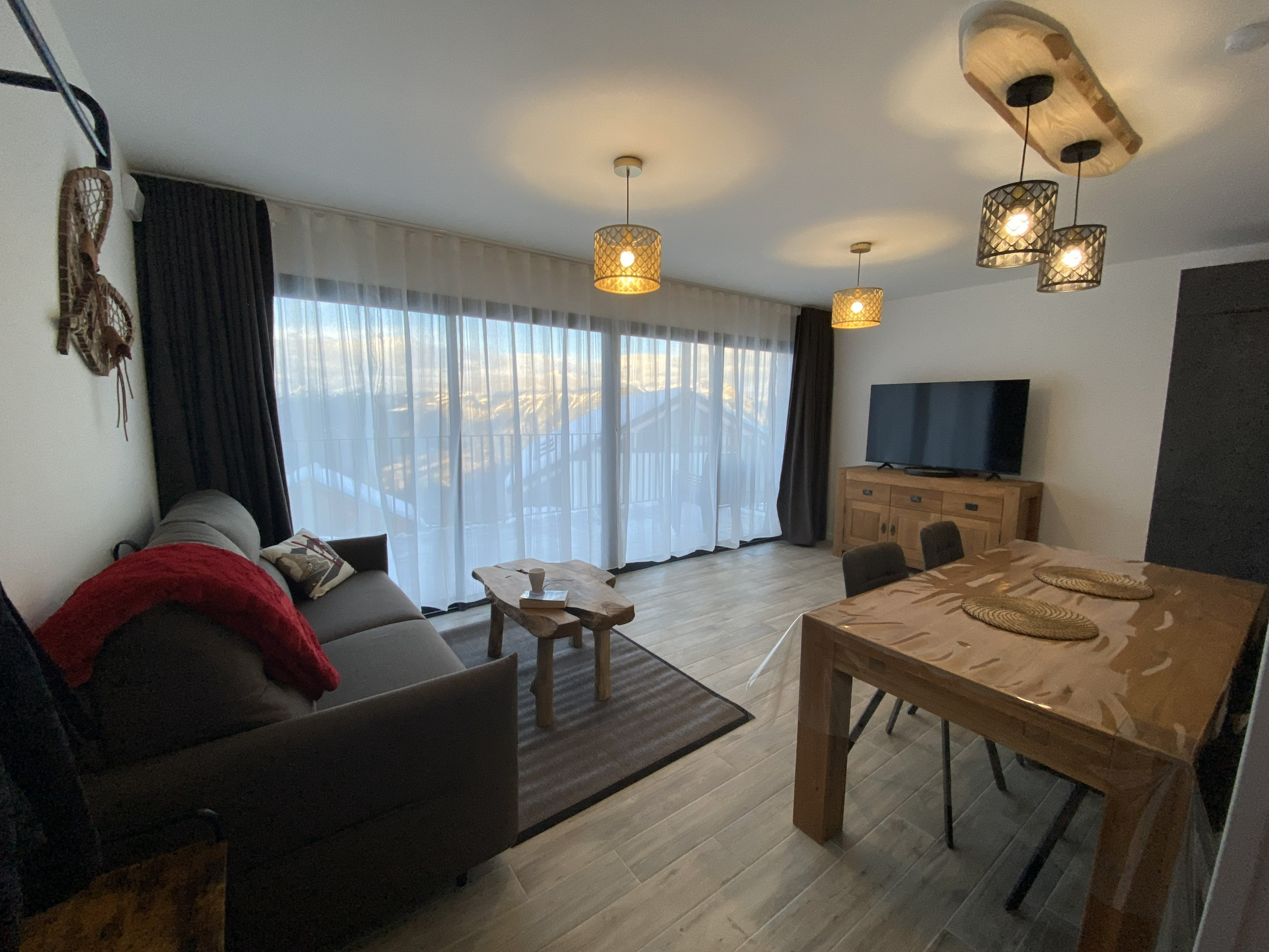 Logement de 60 m² confortable et de construction récente, avec vue sur la montagne.