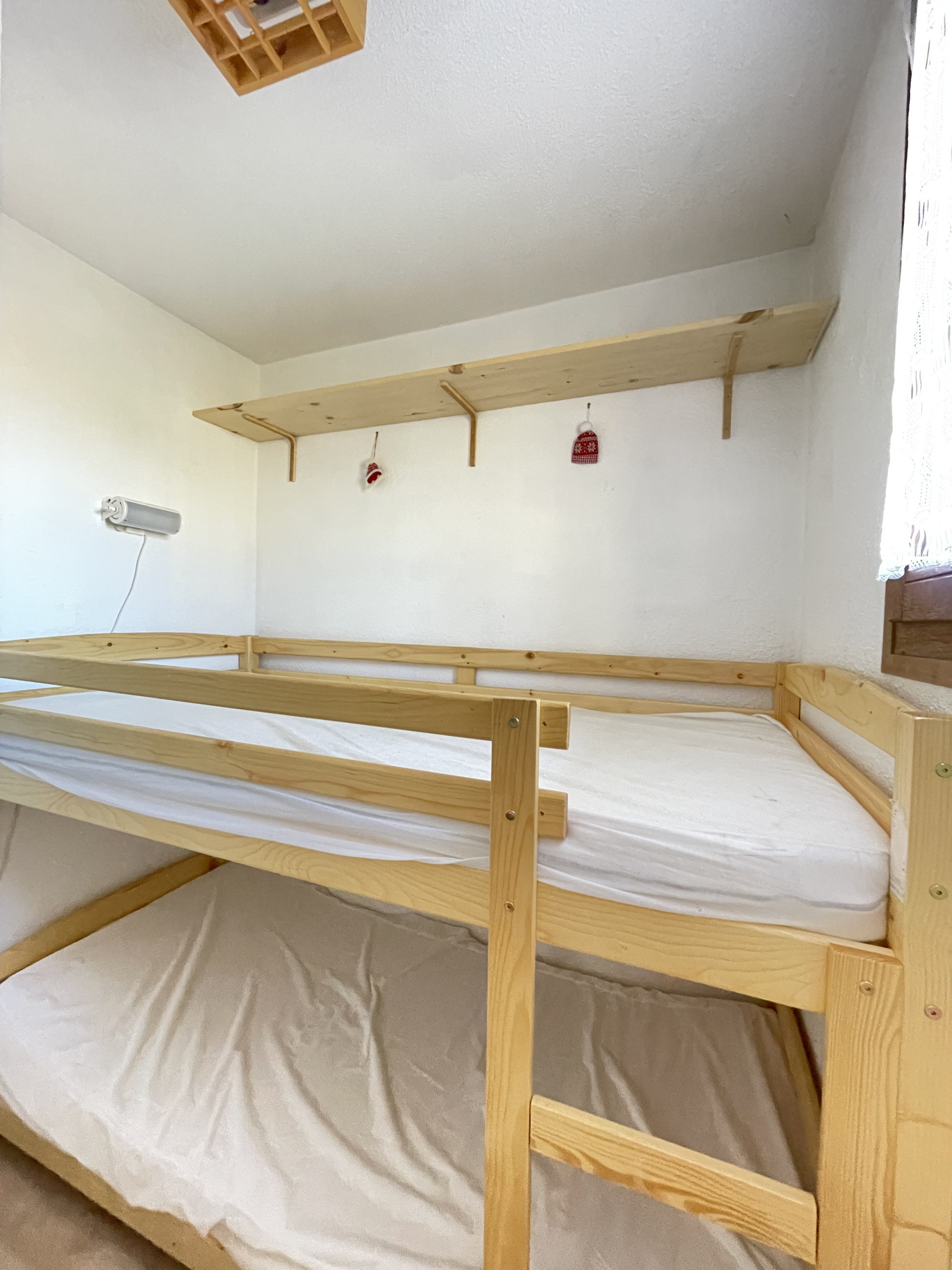 Cabine séparée du séjour par porte, équipée d’un ensemble de 2 lits superposés